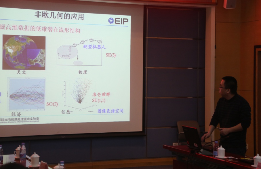 重点实验室主任史泽林研究员总结汇报了一年来的总体运行情况,重点介绍了实验室在信息光电子学、计算成像、智能信息处理及新体制应用等方向上取得的学术进展,汇报了实验室面向国家战略需求、面向本领域科技前沿所做的未来设想与布局。朱枫研究员、刘云鹏研究员分别作了“智能感知研究及应用的考虑”、“基于非欧几何的目标识别与跟踪方法”学术报告。