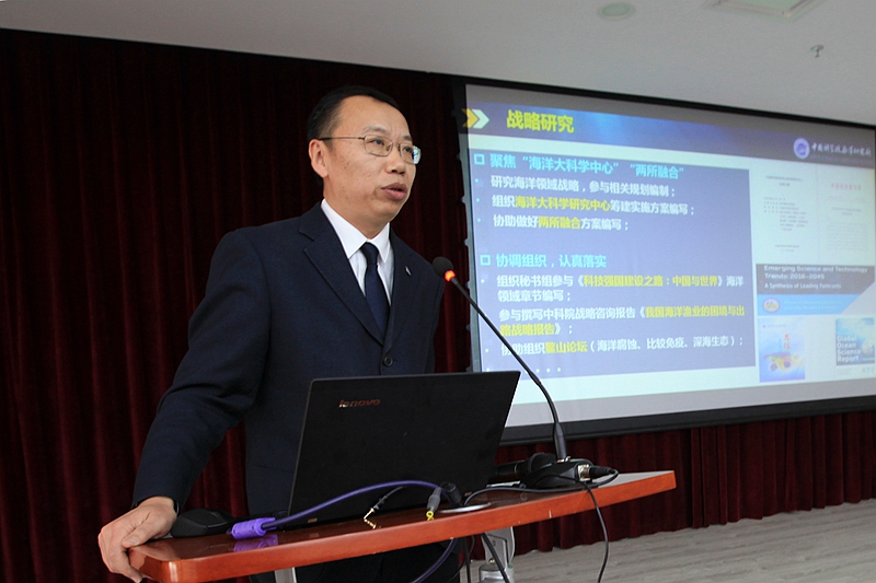 实验海洋生物学、海洋生态与环境科学、海洋环流与波动、海洋地质与环境、海洋环境腐蚀与生物污损5个中科院重点实验室以及海洋生物分类与系统演化实验室、深海研究中心负责人分别汇报了研究室2017年的工作进展,深入分析了困难和不足,提出了2018年的研究室发展思路。