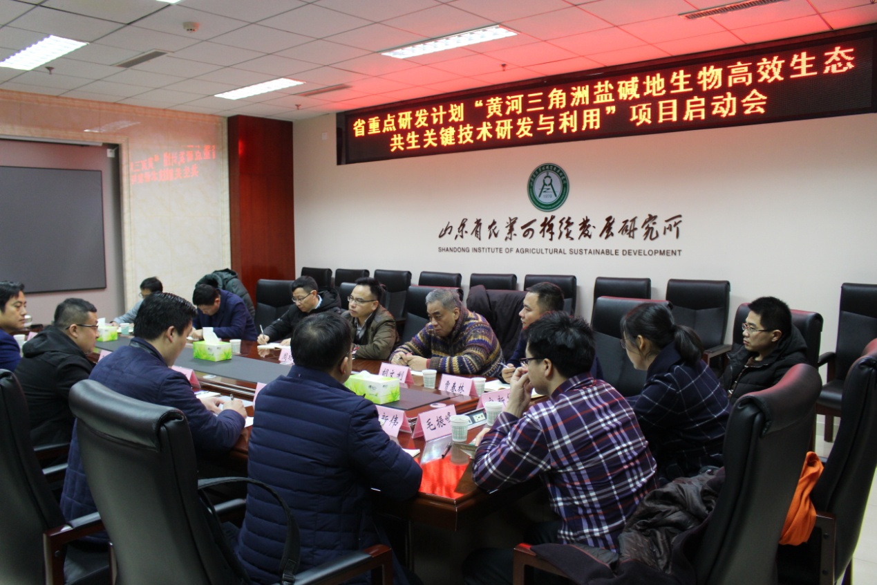 1月26日上午,由青岛能源所植物代谢工程团队研究员周功克主持的山东省重点研发计划“黄河三角洲盐碱地生物高效生态共生关键技术研发与利用示范”项目启动会在济南召开。山东省科技厅农村处副处长刘赤兵、山东省农业科学院科研处副处长赵海军和山东省农业可持续发展研究所书记王祥峰等出席了会议。来自中科院青岛能源所、山东省农业可持续发展研究所、山东省农科院畜牧兽医研究所、山东理工大学、青岛农业大学、潍坊丰瑞农业科技有限公司、昌邑润德生态纤维有限公司等项目承担单位的20余名科研人员参加了会议。