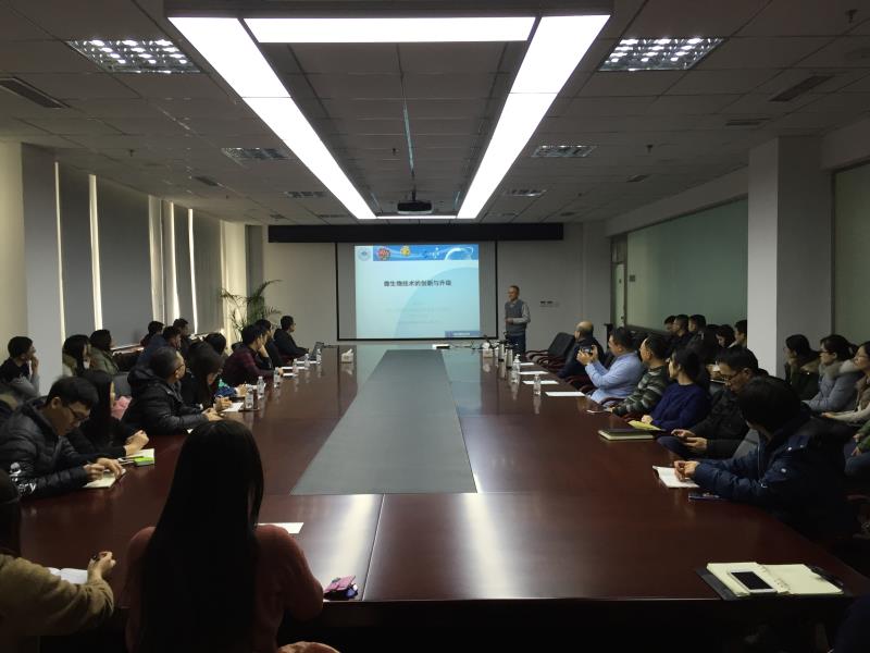 学术报告会议由咸漠研究员主持。在报告中,祁庆生从基于创新生物学理论的生物技术、基于大数据的反馈过程与预测、基于环境和宿主的生态作用等几个方面入手,介绍了微生物技术的创新与升级对生物制造产业的推动作用及未来发展趋势。同时结合具体的研究实例深入浅出地解释了微生物技术创新发展中新物种、新资源和新概念发现和提出的重要性。报告结束后,参会人员就相关学术问题与祁庆生进行了深入的讨论和交流。