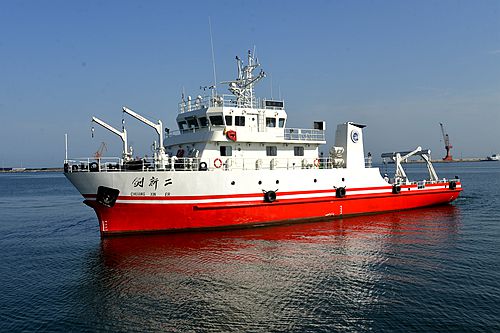 “创新二”号于2017年11月30日正式交付使用,是一艘适用于长江口附近河口浅水区和近海区的小型海洋科学综合考察船。该船配置常规水文和生物绞车、专业信号传输绞车,具备对河口和近海浅水区海洋生物、生态、环境、化学要素观测和采样能力,兼具水文、地质、气象等其他学科的观测和采样能力?!按葱露焙呕古渲糜嬉底试吹鞑橛糜婢叩钠鸱磐璞?,具备基本的渔业资源调查能力;配有干性实验室和湿性实验室,具备简单生物、化学样品处理和分析能力;配置船载定位系统、船用雷达和卫星通信设备等。