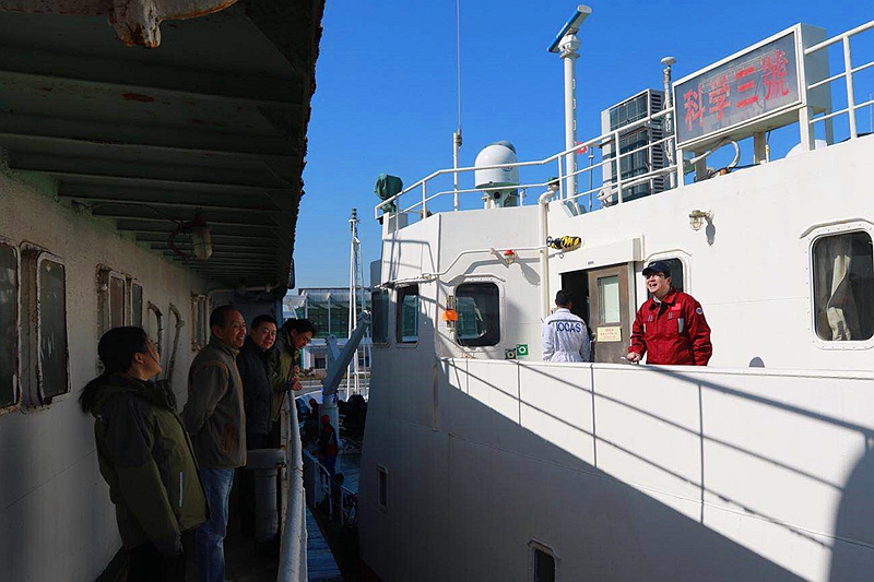 3月9日,“科学三号”从中国科学院海洋研究所薛家岛码头起航,赴长江口执行国家自然科学基金2018年度“长江口科学考察实验研究”共享航次任务,于仁成研究员担任航次首席科学家。党委副书记、纪委书记毕伟,所长助理刁新源、程培周,以及科考船运管中心负责人及相关工作人员前往码头送行。