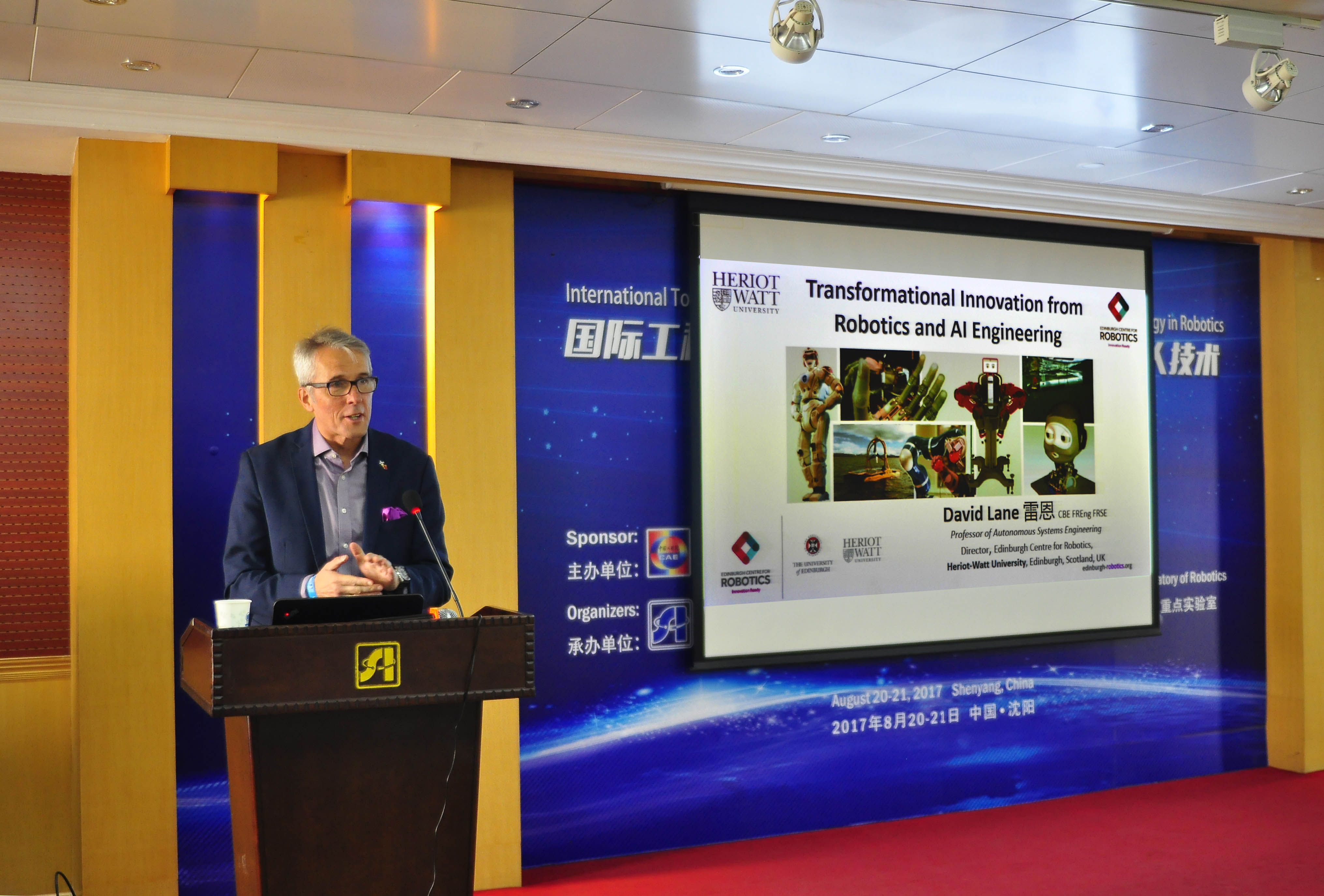 3月10日,应机器人学国家重点实验室的邀请,英国皇家工程院院士、爱丁堡皇家学会院士、爱丁堡机器人中心主任David M. Lane教授访问中国科学院沈阳自动化研究所,并作了题为Delivering Transformational Innovation from Robotics and Artificial Intelligence Engineering的学术报告。沈阳自动化所副所长李硕主持学术报告会,封锡盛院士及相关科研人员、研究生等150余人参加报告会。