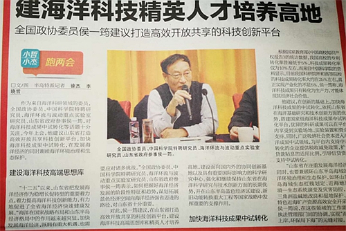赴京出席本次全国政协会议之前,侯一筠委员积极参加全国政协关于“推进21世纪海上丝绸之路建设”、“充分发挥海南在建设‘新丝路’中的战略支点作用”、“全国沿海城市垃圾处理问题”等专题调研,重点深入青岛相关科研院所高校,围绕海洋科技、经济和社会发展等方面的热点、难点问题展开深入调研,广泛听取社会各界的意见和呼声。