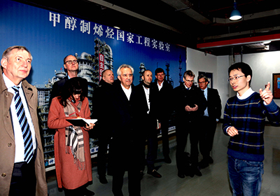 在所期间,代表团一行还参观了纳米与界面催化研究组、甲醇制烯烃国家工程实验室、储能技术研究部以及电镜技术研究组,代表团就感兴趣的问题与科研人进行了讨论。