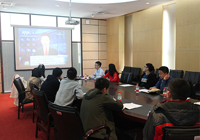 团委副书记杨超带领大家通过视频形式学习了习近平在学习贯彻党的十九大精神研讨班开班式上的重要讲话,以及习近平回信勉励莫斯科大学中国留学生的相关内容。