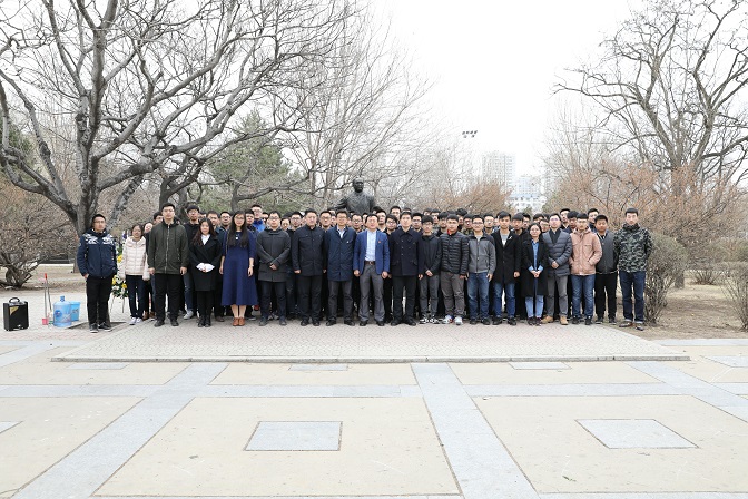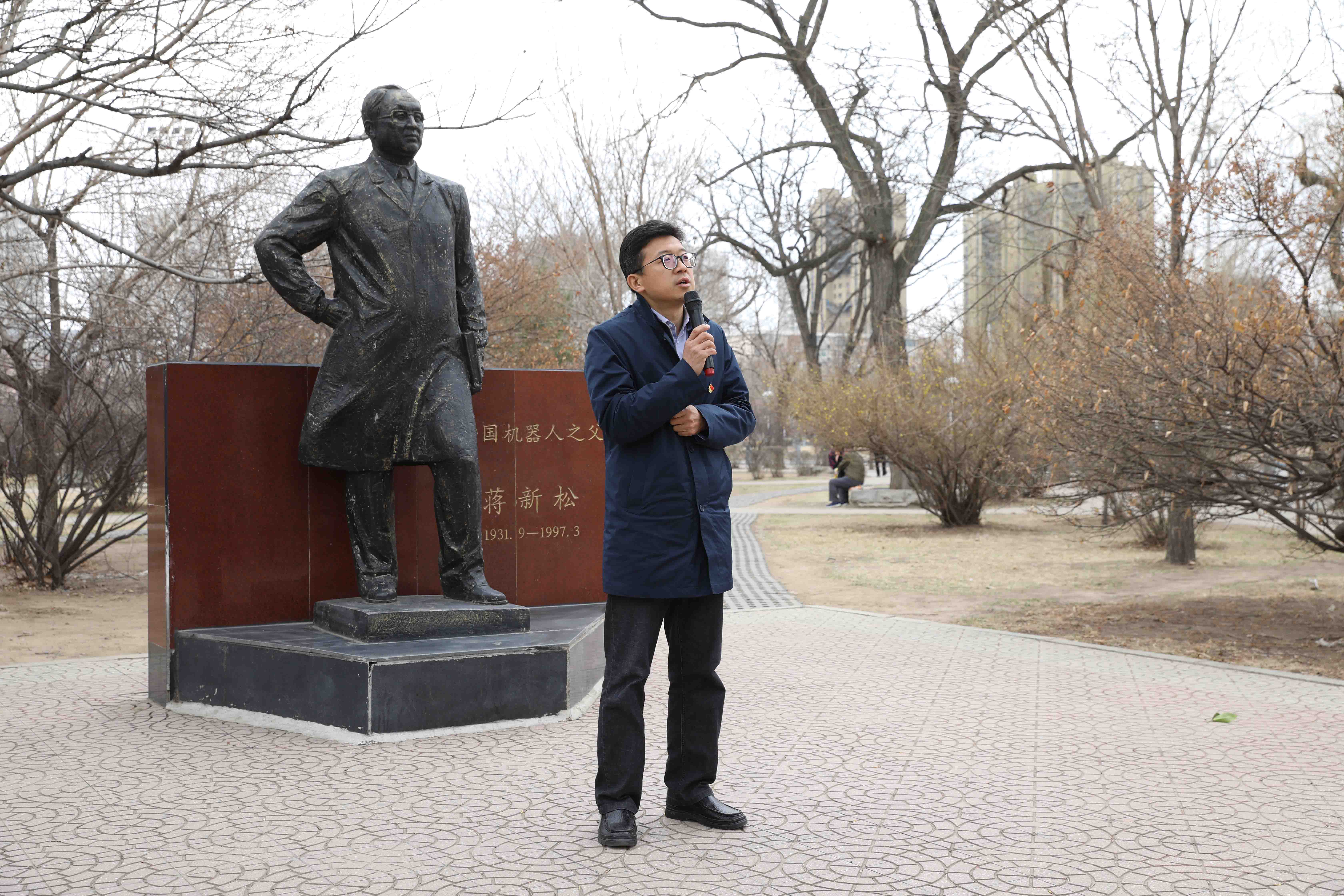 随后,桑子刚和孙雷为蒋新松塑像献上花篮。参加活动人员依次为塑像献上鲜花并默哀。