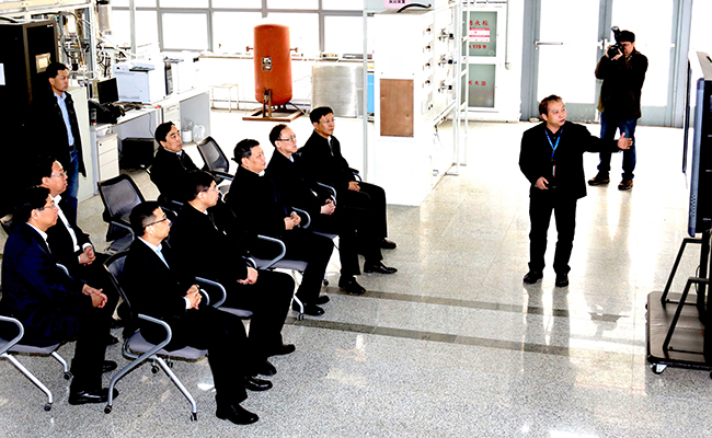 唐一军首先听取了刘中民对大连化物所基本情况的介绍,随后依次到低碳催化与工程研究部、燃料电池研究部、储能技术研究部进行参观,听取了研究室(部)相关人员的科技工作汇报,并就科技创新、成果转化等方面的问题与科研人员进行了深入的交流探讨。