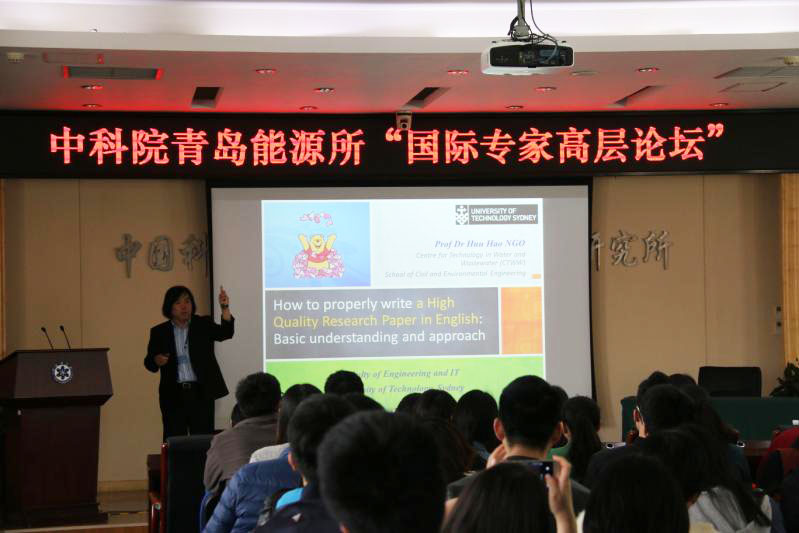 4月20日下午,生物能源领域国际知名SCI期刊Bioresource Technology执行主编Huu Hao Ngo教授做客我所国际专家高层论坛,为研究所科研人员和学生做了题为“How to properly write a high quality research paper in English”的学术讲座。科技处副处长李敬主持论坛,并为Ngo教授颁发了“国际专家高层论坛”荣誉奖牌。 Ngo教授首先介绍了其所在的悉尼科技大学的情况,并介绍了Bioresourse Technology期刊近年的发展。随后,着重从期刊编辑的角度对科研论文的Title、Abstract、Introduction、Materials and methods、Results and discussion、Conclusion等各部分的写作方法和注意事项进行了详细讲解,列举了若干实例和技巧,并与参会人员现场进行了答疑解惑、交流心得。本次“国际专家高层论坛”为大家提供了难得的可以与国际知名期刊主编面对面交流的机会,研究所科研人员和学生表示受益匪浅。