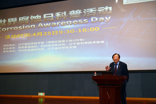 世界腐蚀组织主席、中国科学院沈阳分院院长、中国科学院金属研究所研究员韩恩厚为社会公众作了题为《腐蚀-使用材料的永恒主题》的报告。他在报告中特别强调,我国每年为腐蚀付出的代价相当于每年GDP的4%-5%。腐蚀不仅污染环境,还会威胁人类健康,厨房里锈迹斑斑的铁锅、水龙头,道路融雪剂腐蚀的马路、桥梁等。但腐蚀如果巧妙利用也可以为民造福,如热水器中的镁棒、可降解的骨内固定器件、可降解的镁合金心血管支架等。腐蚀就发生在每个人的身边,但至少发生的30%的腐蚀是可以通过科普、研究与技术应用来实现降低损失、降低资源消耗、降低污染的。国内的管理者、相关行业以及每个人对腐蚀的认识仍有待提高。
