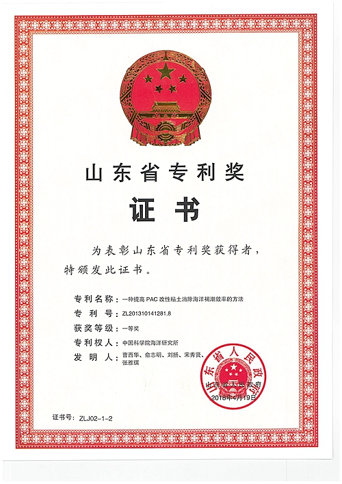 日前,第二届山东省专利奖获奖名单公布,海洋研究所国内授权发明专利“一种提高PAC改性粘土消除海洋褐潮效率的方法”荣获山东省专利奖一等奖。