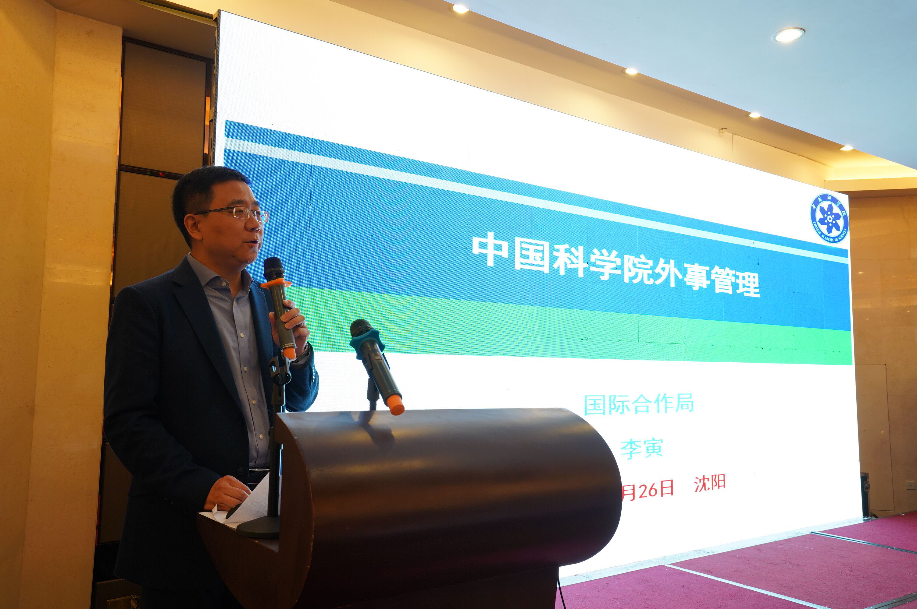 4月26日至27日,由中国科学院国际合作局主办、中国科学院沈阳自动化研究所承办的中国科学院2018年度外事管理培训班在沈阳举办。中科院国际合作局局长曹京华、副局长李寅等一行11人,外交部外管司一等秘书宋长虹、外交部领事司三等秘书黄锦,辽宁省公安厅出入境管理局刘忠东处长,沈阳自动化所党委书记兼副所长桑子刚,沈阳分院副院长马越红以及中科院各研究所相关工作人员近150人参加了此次培训班。培训由李寅主持。