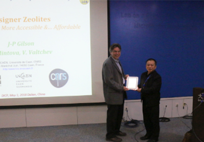 5月3日下午,法国卡昂大学Jean-Pierre Gilson教授受邀在中国科学院大连化学物理研究所生物楼学术报告厅做了题为“Designer Zeolites: Better, Smaller, More Accessible & Affordable”的第VI期中国科学院大连化学物理研究所70周年所庆学术报告。所长刘中民及相关领域的科研人员和研究生参加了报告会,刘中民代表大连化物所向Gilson表示欢迎并颁发了所庆学术报告奖牌。报告由大连化物所徐云鹏研究员主持。