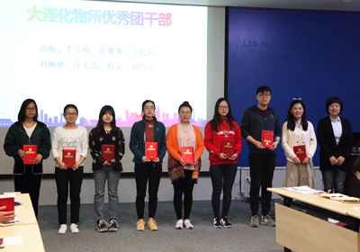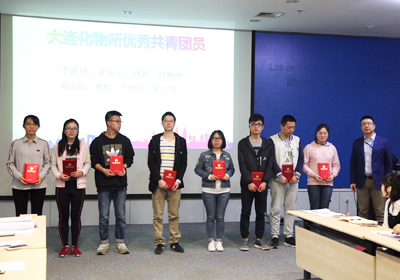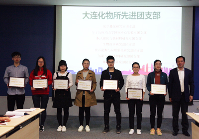 关佳宁通报了大连化物所2017年度团的工作在中科院和大连市表彰中的获奖情况,宣读了“关于表彰2017年度‘大连化物所先进团支部’、‘大连化物所优秀团干部’和‘大连化物所优秀共青团员’的决定”。毛志远,所长助理、党委委员、办公室主任杨宏,研究生部副主任熊川男分别为获奖团队代表和个人颁奖。