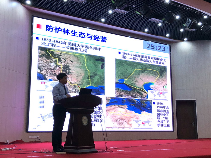 5月6日上午,朱教君研究员在大会上作题为“防护林生态与经营”的特邀报告,从防护林生态与经营概述、防护成熟与阶段定向经营、结构量化与配置优化调控、衰退及其防治与更新、防护林生态研究展望五个方面全面展示了自我国开始建设防护林以来,中国科学院沈阳应用生态研究所在防护林生态与经营研究领域取得的阶段性成果。随后,朱教君研究员为大会优秀墙报奖获得者颁奖。