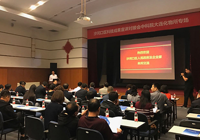 5月18日,作为签约仪式的活动环节之一,“沙河口区科技成果宣讲对接会中科院大连化物所专场”在大连化物所礼堂举行??浊熘榈惹斓夹角?0余家企业家代表来所听取成果发布报告,对接会由大连化物所知识产权与成果转化处处长张晨主持,大连化物所党委书记王华在会上致辞?;岷?,区领导及企业家还参观了大连化物所甲醇制烯烃国家工程实验室、储能技术研究部、化学传感器研究组与天然产物及糖工程研究组,并就感兴趣的技术与研究人员进行深入交流。