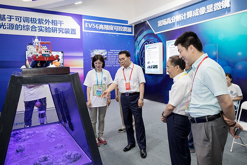 5月19日上午,由科技部和北京市政府共同主办的“2018年全国科技周暨北京科技周活动主场”在中国人民革命军事博物馆开幕。中央宣传部部长黄坤明,北京市委书记蔡奇,中国科学院院长、党组书记白春礼等出席开幕式并参观。海洋所“深远海探测体系与研究平台”及“海洋生态牧场”系列成果受邀在科技创新成果展区展出,并受到高度关注。