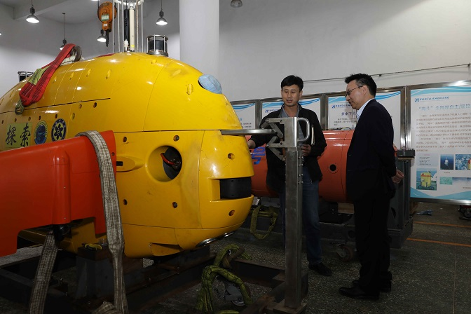 来访期间,科技处处长胡琨元陪同吴立新一行参观了水下条件实验室和研究所科技成果展馆。