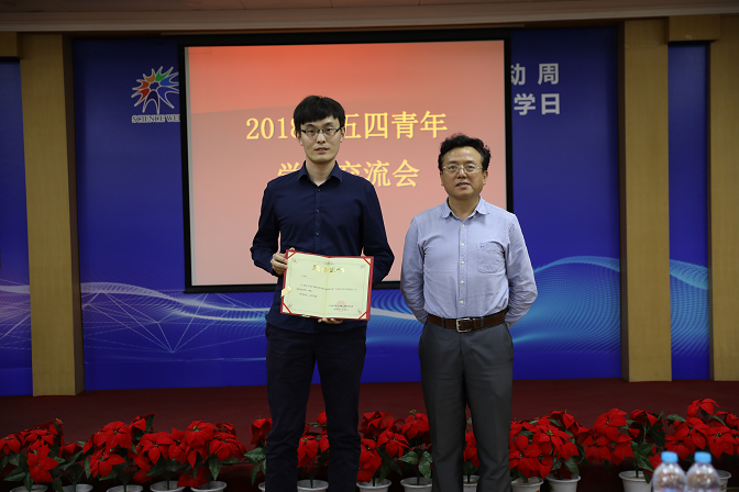 桑子刚为一等奖获奖者孙朝阳颁奖