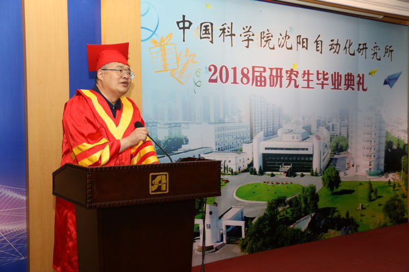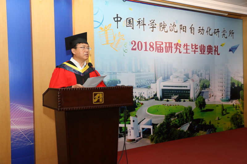 6月6日上午,中国科学院沈阳自动化研究所2018届研究生毕业典礼隆重举行。沈阳自动化所毕业生和导师、亲朋好友一起参加了这一难忘的人生庆典。沈阳自动化所学位评定委员会主席、所长于海斌,学位评定委员会副主席、党委书记兼副所长桑子刚和学位评定委员会成员代表出席了本次毕业典礼。典礼由桑子刚主持。