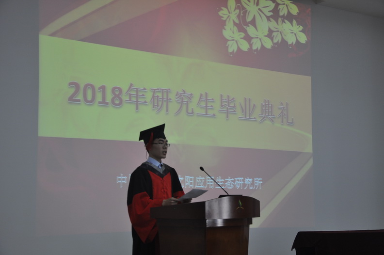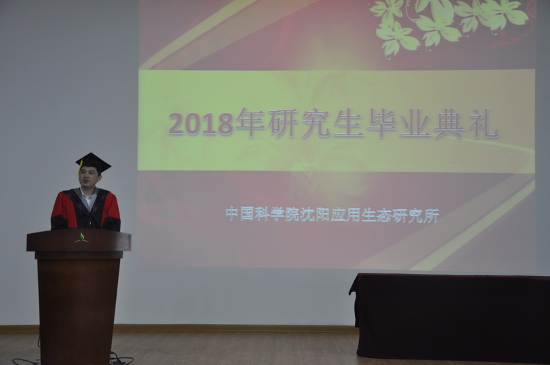 2018年6月8日,中国科学院沈阳应用生态研究所2018年度毕业典礼在研究所多功能厅隆重举行。研究所学位评定委员会委员、导师代表、全体毕业生及部分毕业生亲友们参加了这一难忘的人生庆典。毕业典礼由研究生部副主任(主持工作)付彬主持。 本年度共有78名研究生毕业,其中博士生29名、硕士生49名。