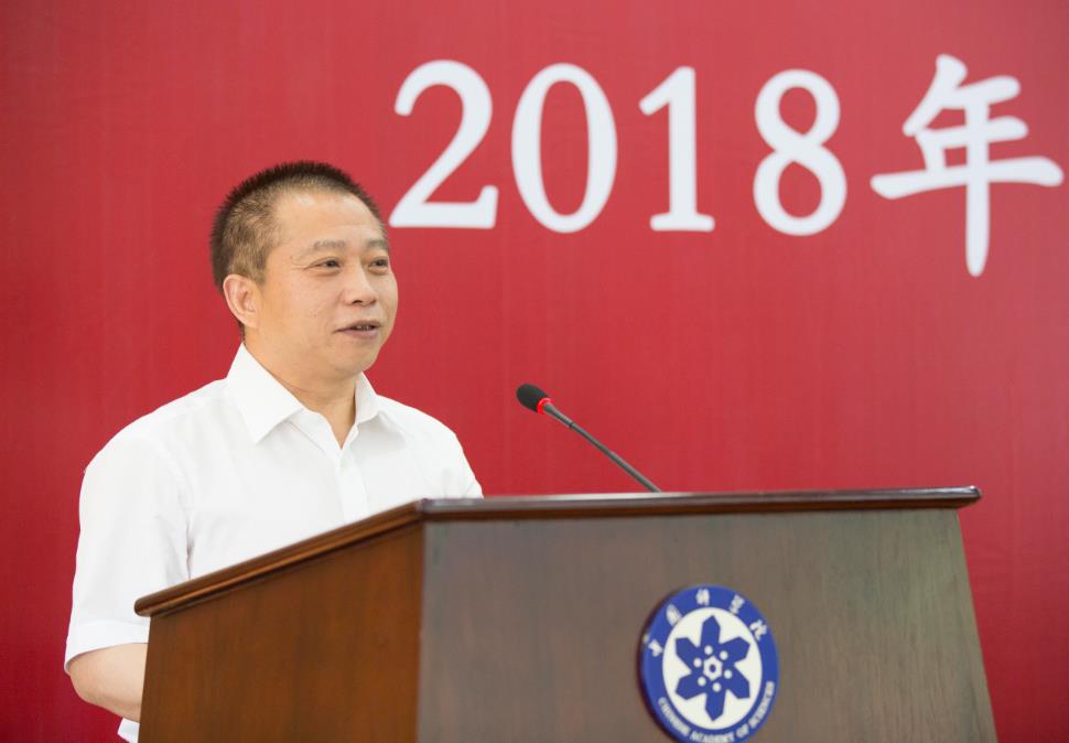 咸漠研究员代表研究所的老师们向毕业生表示祝贺,对研究生的工作给予充分肯定,感谢他们为科学研究做出的贡献,同时送上了诚挚的祝福和期待。期望毕业生们带着祝福和期盼在未来更广阔的舞台上大放异彩,能成为把简单事情重复做好的专家,把重复事情用心做好的人生赢家。并希望他们有雄心、有梦想、多思考、有胆识、能担当,为国家,为民族,为集体,为明天,华山论剑,纵横天地,实现人生梦想。
