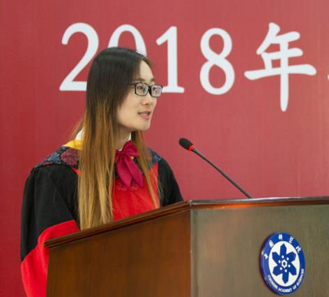王延青代表毕业生回顾了在研究所学习的点滴和心路历程,向辛勤的导师、领导和工作人员表达了衷心的感谢。王延青坦言毕业之际面临各种选择时的纠结,并终于悟出唯有努力才能让当下的决定成为最好的选择。