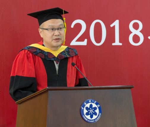 刘中民通过崂山道士的故事向同学们道出了“宝剑锋从磨砺出,梅花香自苦寒来”的道理,强调毕业典礼是人生重要的分水岭,更是迈向新征程的起点。无论未来毕业生选择什么样的道路,都希望他们义不容辞的承担起这个伟大民族复兴新时代所赋予的历史使命,勇于承担社会和家庭责任,将个人的事业发展融入国家的发展与民族振兴,立志高远、不畏艰险、永攀高峰。他祝愿同学们,经历山海之城的成长与历练,愿你们以山的气度、海的胸怀,带上青能所“家”的记忆和祝福,勇敢地奔向未来,仗科学磨砺之剑,登极顶揽胜,到中流击水,去开创美好的新生活!