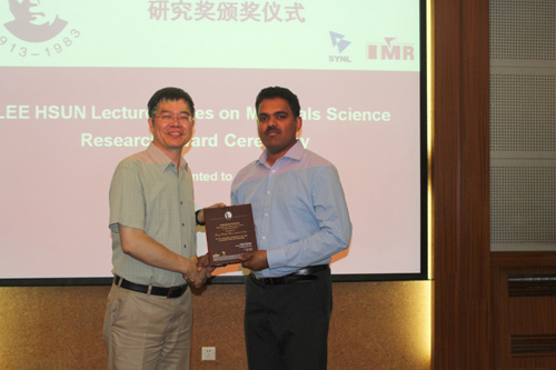 来访期间,Rahul R. Nair教授为金属所科研人员和研究生作了题目为“Tunable graphene-based membranes”的报告。报告前,成会明院士为Rahul R. Nair教授颁发了李薰研究奖奖牌,任文才研究员主持了报告会。