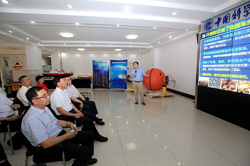 王凡所长从历史沿革、园区规划、人才队伍、研究生教育、能力建设、亮点科研成果等方面向曹建明副委员长一行汇报了海洋所的基本情况,以及海洋所在两所融合、科教融合、平台融合以及中科院海洋大科学研究中心筹建方面的相关工作。