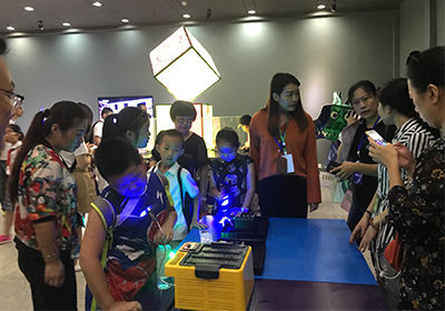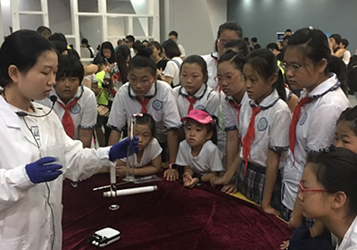 此次科普嘉年华活动主要包括纪念改革开放40周年回顾展、系列科普报告、展厅科普体验及广场互动科普展览等。大连化物所郑明远研究员、青年科技工作者贺敏和房硕在系列科普报告环节分别作了题为《化学,世界因你而精彩》《漫话蛋白质》和《神奇的激光》的科普报告。他们通过通俗易懂的语言阐述了生活中常见现象的科学原理。在展厅科普体验环节,大连化物所的“加入海水,点亮一盏灯”和“消失的彩虹”现场试验非?;鸨?,小朋友们通过加入海水将彩灯点亮和观察溶液因酸碱性改变而发生颜色变化来亲身体会化学的神奇。同时,大连化物所还现场展示了燃料电池、合成气制乙醇、无人机新型锂硫电池和氢燃料电池汽车等展品,得到了市民的关注和喜爱。