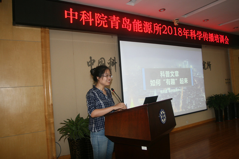 为进一步提高研究所职工、研究生在英文新闻、政务信息、科普文章等方面的写作能力,提升宣传意识,9月21日,青岛能源所举办了2018年科学传播培训会。此次培训会主要围绕英文新闻、科普文章及政务信息写作三个方面展开,特邀中科院国际合作局综合处副处长张清泉、中科院科学新闻中心英文主任编辑陈娜、中科院科学新闻中心“中科院之声”编辑范思璐、大连化物所原政务信息主管孙洋分享了科研进展英文稿件写作方法、科普文章撰写要求和政务信息写作技巧。