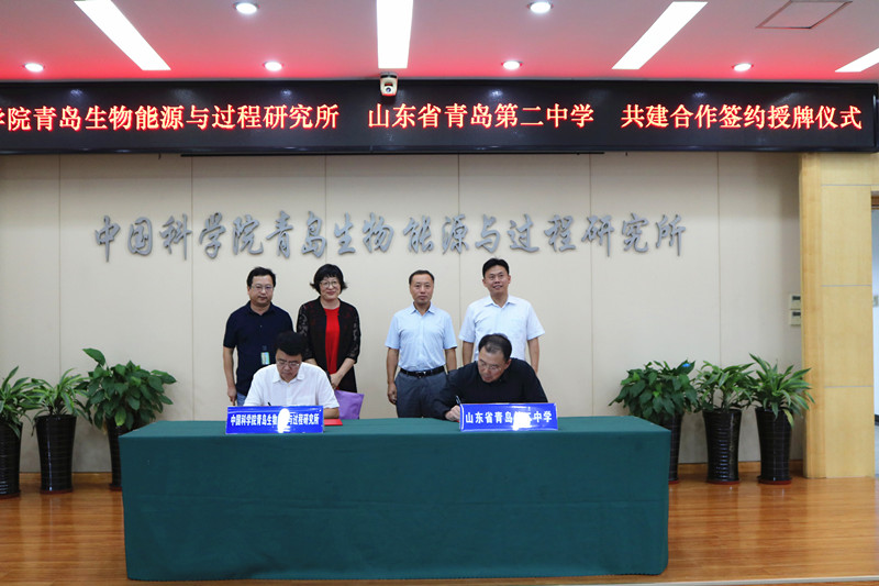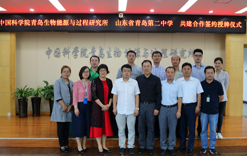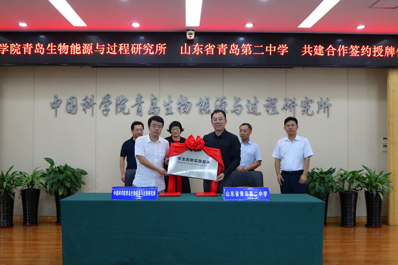 9月25日下午,中国科学院青岛生物能源与过程研究所与青岛第二中学共建学生创新实践基地合作协议签字揭牌仪式在青岛能源所举行。研究所党委书记彭辉、青岛第二中学校长孙先亮分别致辞并代表双方签约。研究所党委副书记冯埃生、研究员代表崔球及办公室、科技处、人事教育处等相关部门负责人和青岛第二中学分校副校长于青、创新发展指导中心主任赵忠勇及部分老师代表参加仪式。仪式由冯埃生主持,他首先对孙先亮一行表示欢迎并向与会人员介绍了双方共建创新实践基地的背景情况。