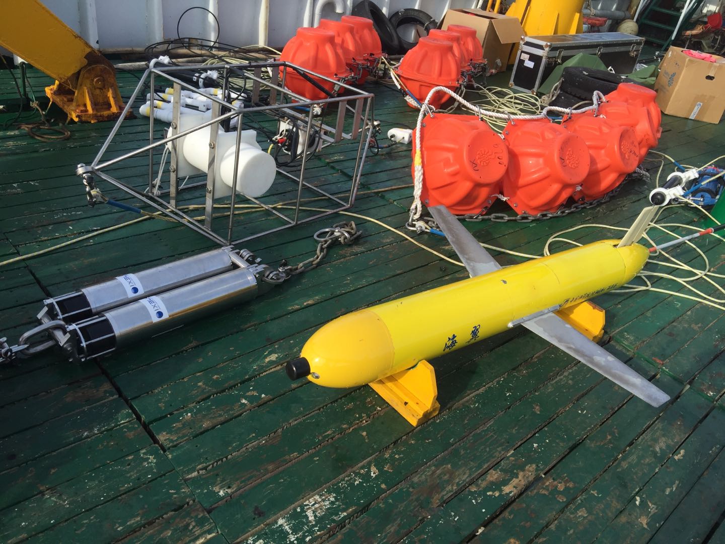 此次南海联合试验由中科院沈阳自动化研究所与中科院深海研究所联合开展,参试设备包括两台“海翼1000”声学水下滑翔机和一套时效潜标。两台水下滑翔机对试验区域的海洋环境参数与声场信息进行连续精细观测,同时通过水声通信机获取时效潜标的观测数据,并将数据通过卫星通信发回岸基监控中心。此次联合海上试验的成功实施不仅拓展了“海翼”水下滑翔机的探测功能,还成功验证了一种移动-固定联合观测作业新模式,为解决潜标观测数据实时化问题提供一种全新解决途径。