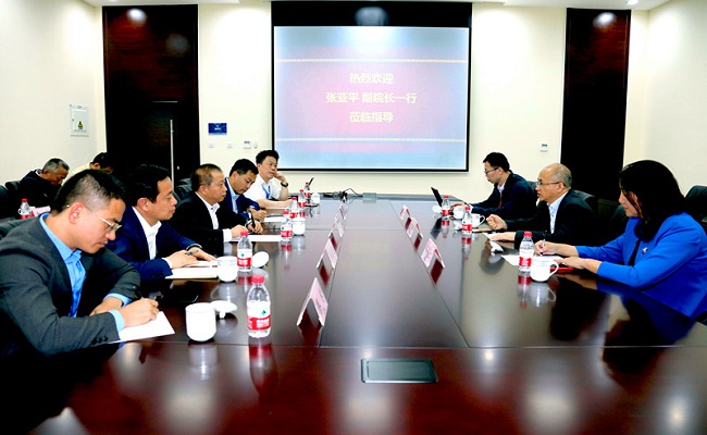 调研期间,张亚平一行参观了大连化物所长兴岛催化剂放大平台、航天催化与新材料研究室、化学激光研究室和大连光源实验室等,听取了相关方向的最新进展汇报,并与科研人员展开了深入交流。