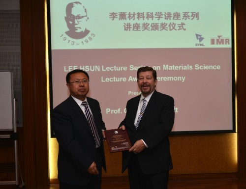 来访期间,Guenter Schmitt教授为金属所科研人员和研究生作了题目为“Corrosion Inhibitors and Flow Induced Localized Corrosion – Achievements and Challenges”的报告。报告前,张哲峰副所长代表金属所为Guenter Schmitt教授颁发了李薰讲座奖奖牌,韩恩厚研究员主持了报告会。报告获得了科研人员和研究生的一致好评。