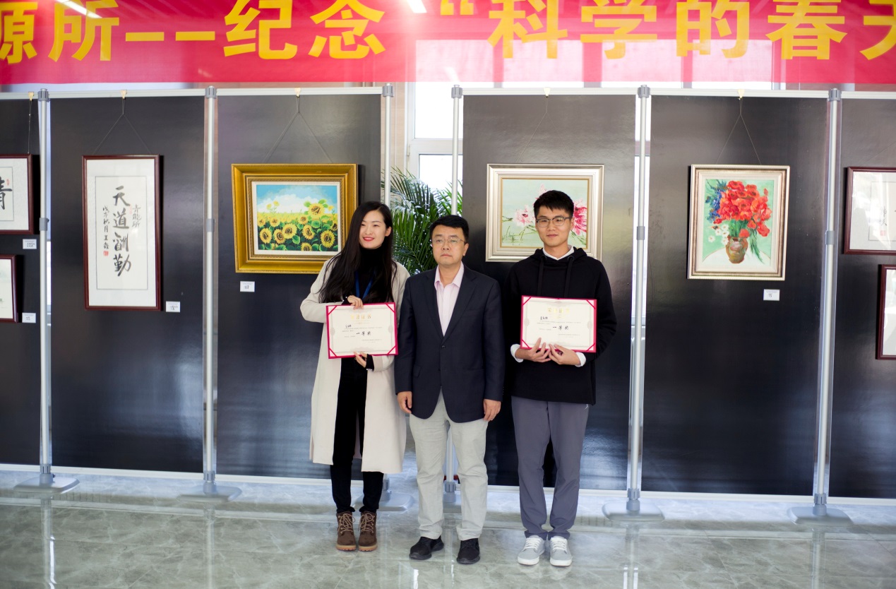 书画摄影展作品于9月27日开始面向全所进行征集,优秀作品由展览期间广大职工、学生的投票评选产生。上午10时许,由党委书记彭辉、所长助理陈骁、办公室主任张瑞东分别为一二三等奖获奖者颁奖。