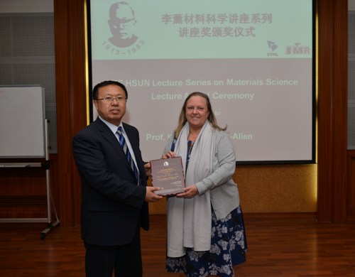 张哲峰副所长代表金属所为K. Jane Grande-Allen教授颁发李薰讲座奖奖牌