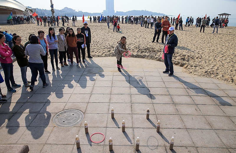 秋高气爽,晴空万里。11月2日,海洋所一年一度的趣味沙滩运动会在青岛第一海水浴场拉开帷幕,党委书记王辉主持开幕式。