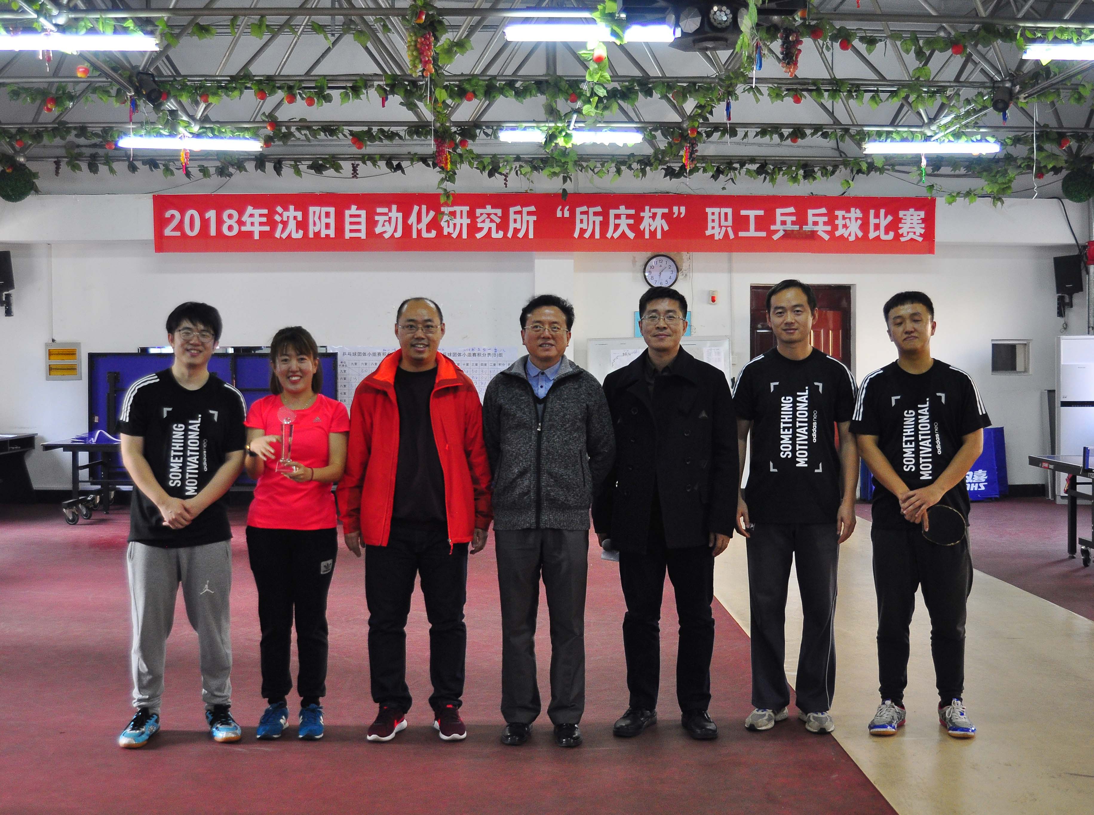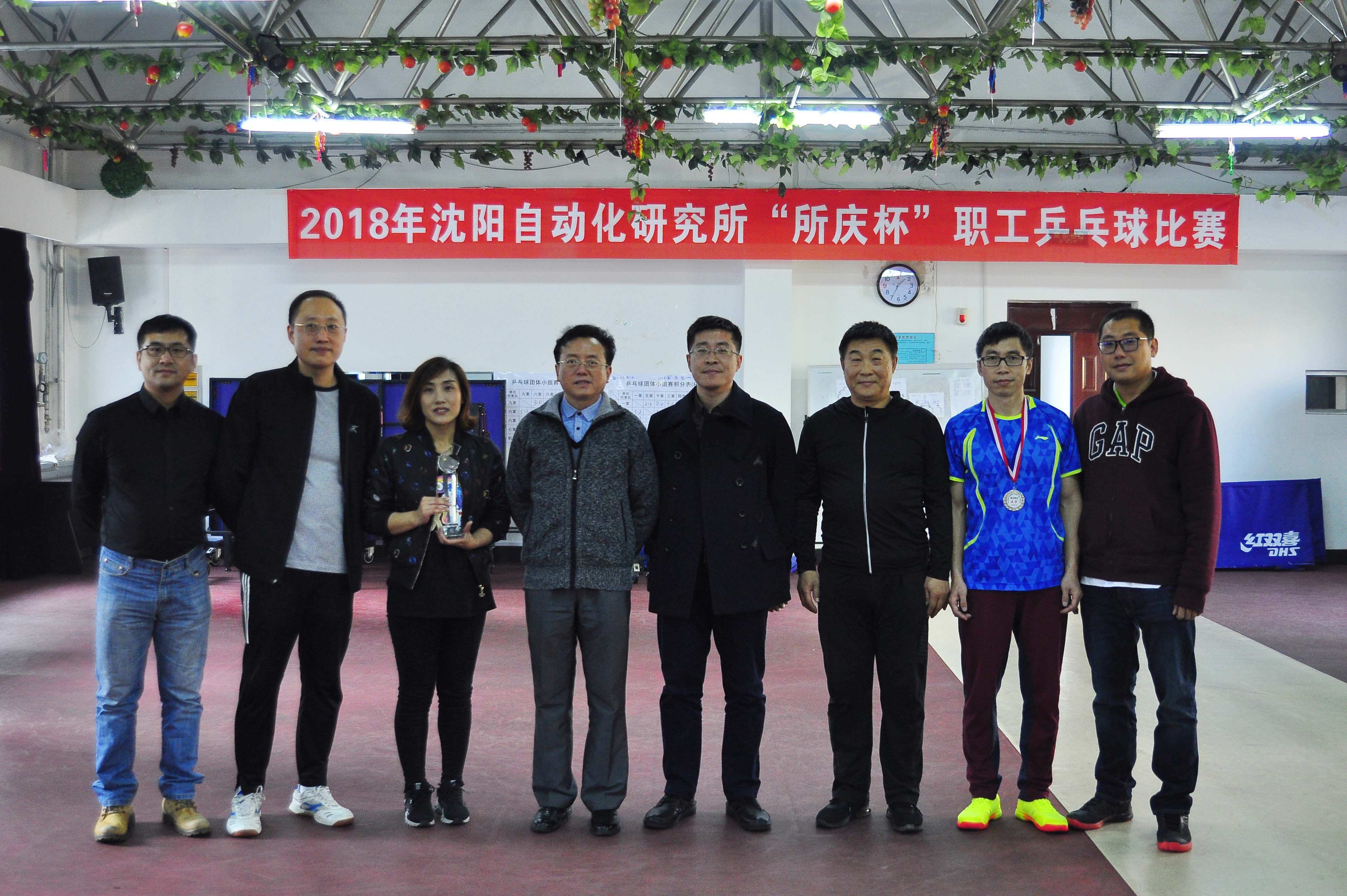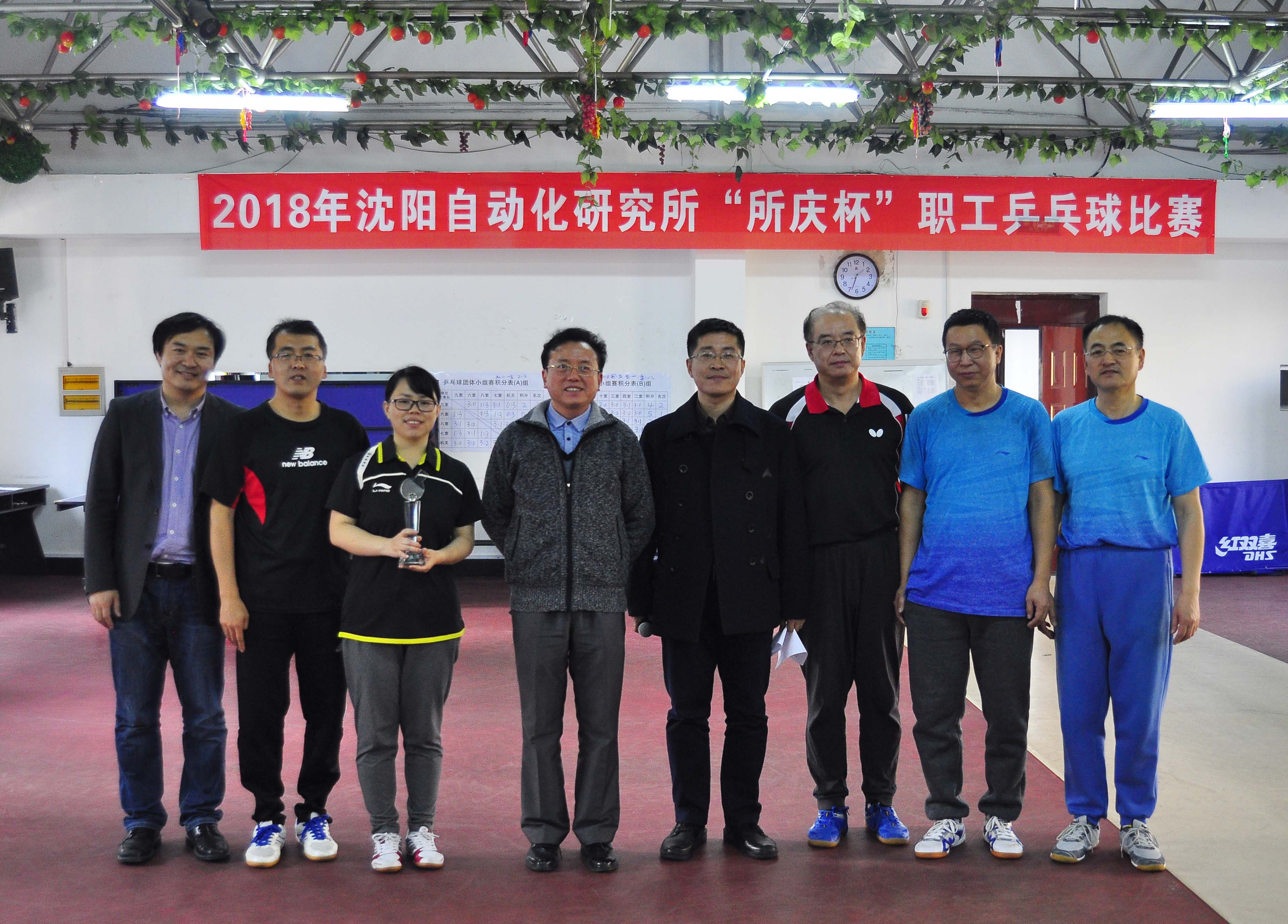 比赛结束后,工会主席王明辉宣布了职工乒乓球比赛成绩。党委书记兼副所长桑子刚向冠亚季军代表队和个人颁发了奖杯奖牌,并合影留念。(工会)