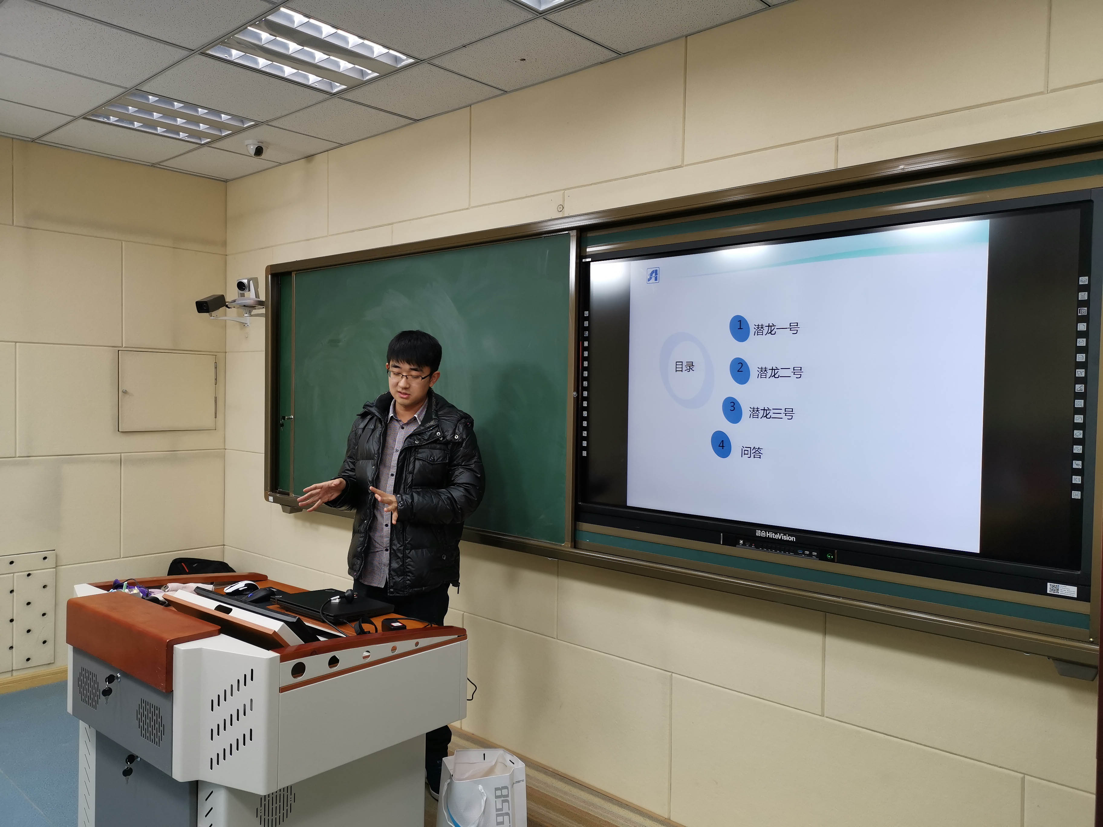 沈阳自动化所水下机器人研究室助理工程师宛利鹤为同学们带来了一堂关于潜龙系列水下机器人的科普课。一堂短暂生动的科普课为同学们带来科学知识的同时,也在孩子们幼小的心灵深处播下科学的种子。(党办)