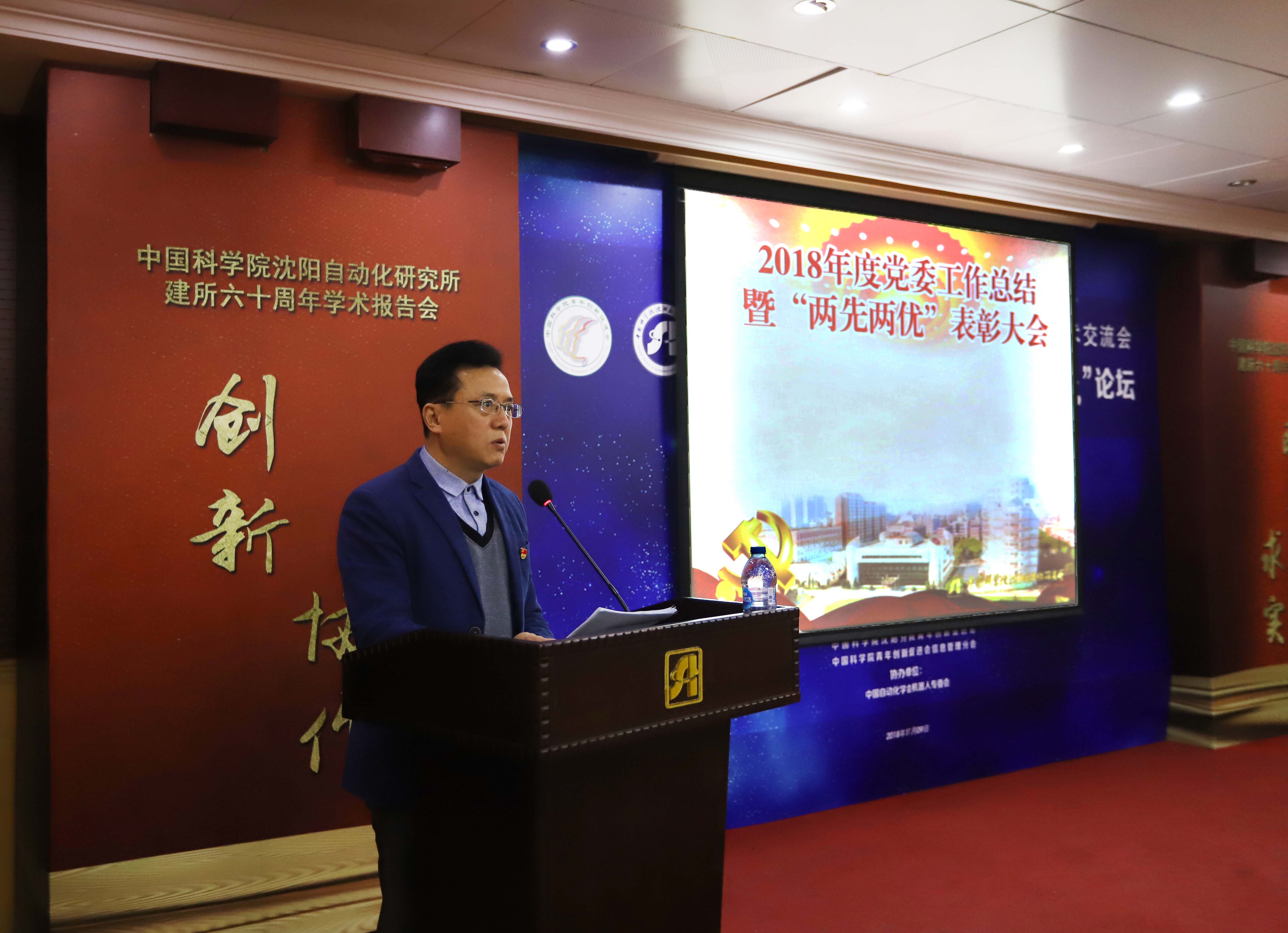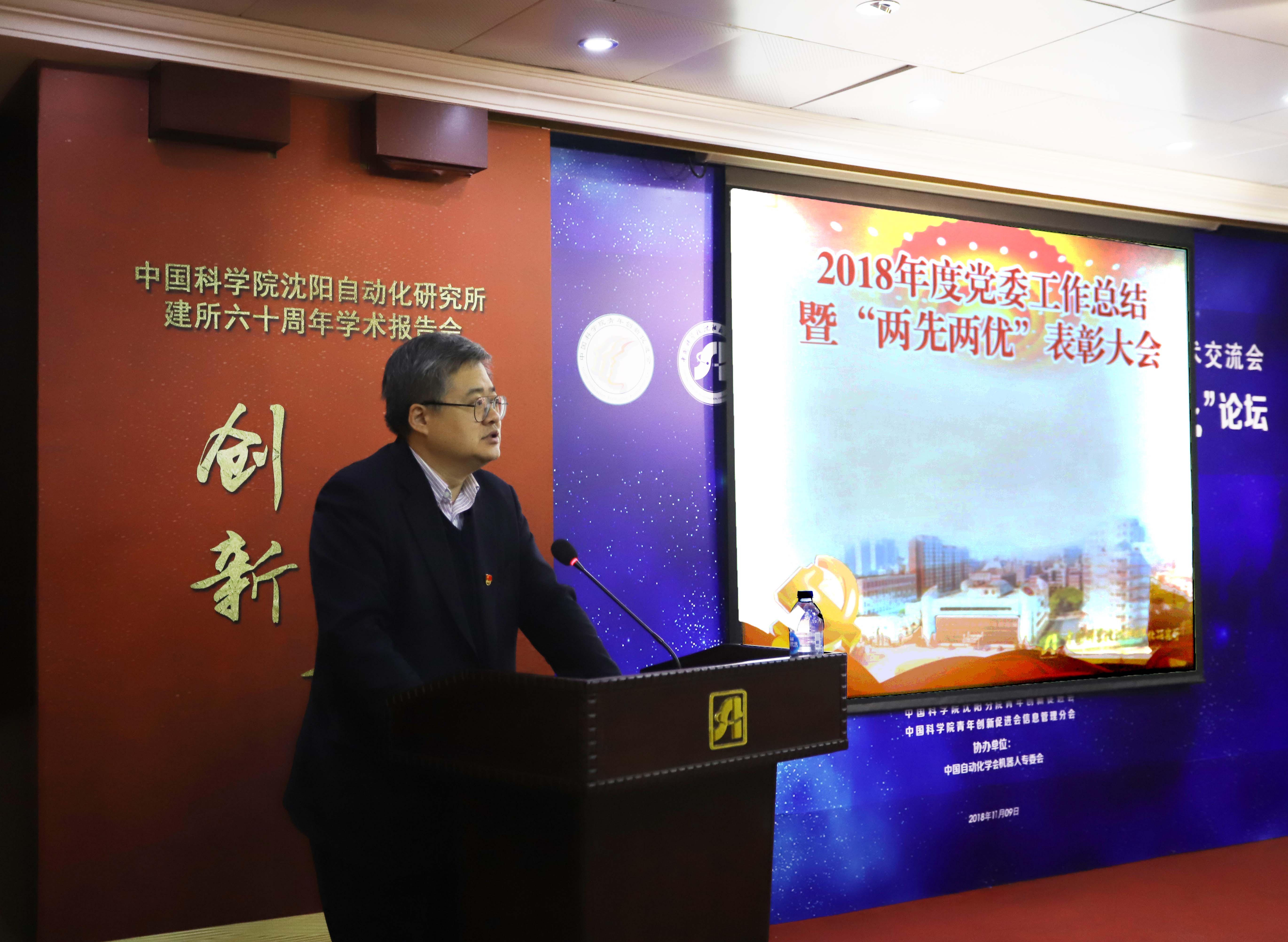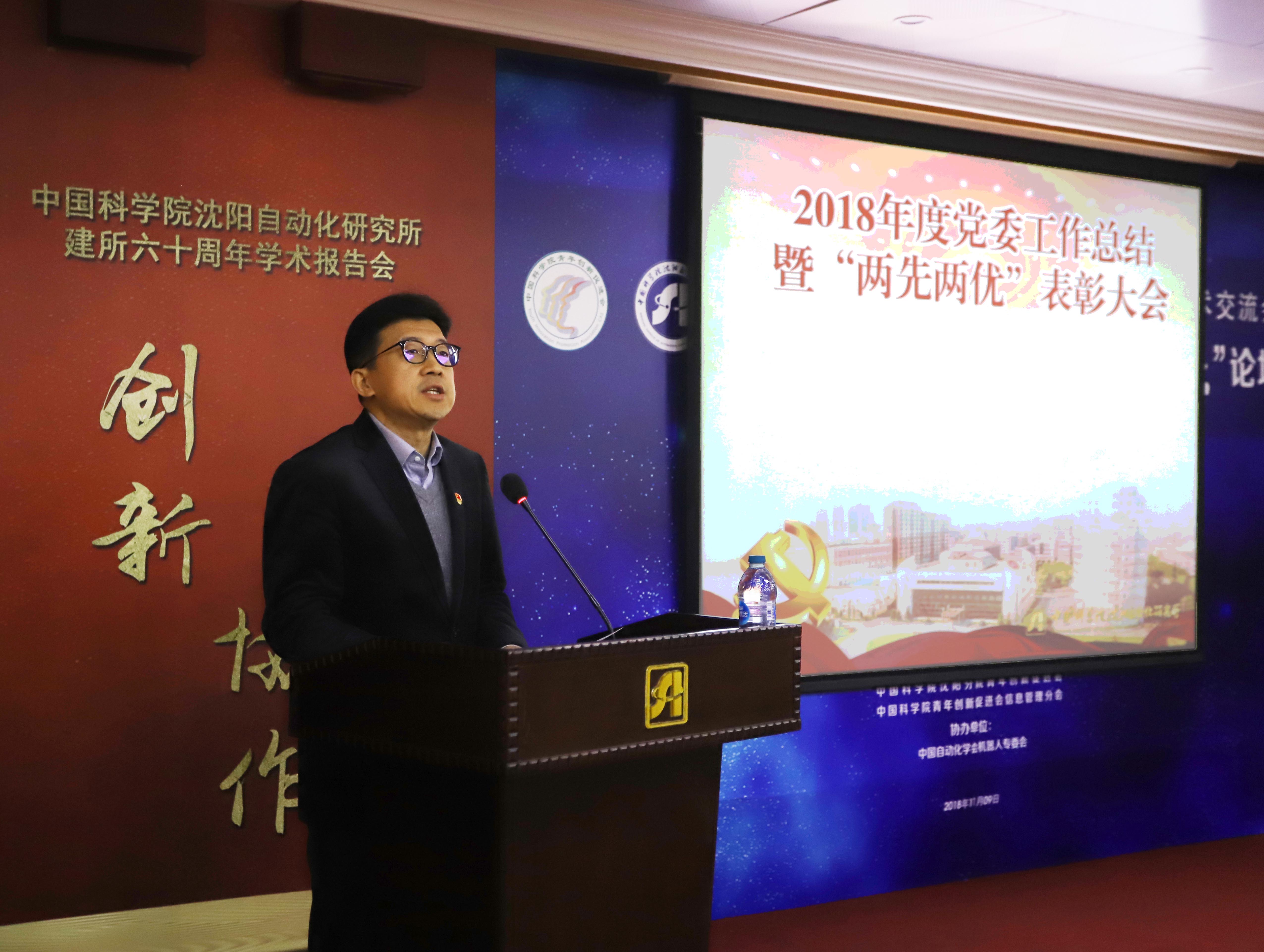 1月22日,中国科学院沈阳自动化研究所召开了2018年度党委工作总结暨“两先两优”表彰大会。党委书记兼副所长桑子刚对过去一年的党委工作进行总结,并部署2019年工作要点?;嵘?,表彰了2018年“两先两优”先进集体和个人。所长于海斌、副所长史泽林、纪委书记梁波和王天然院士及各党支部书记、党员代表150余人参加会议。党委副书记、副所长孙雷主持会议。