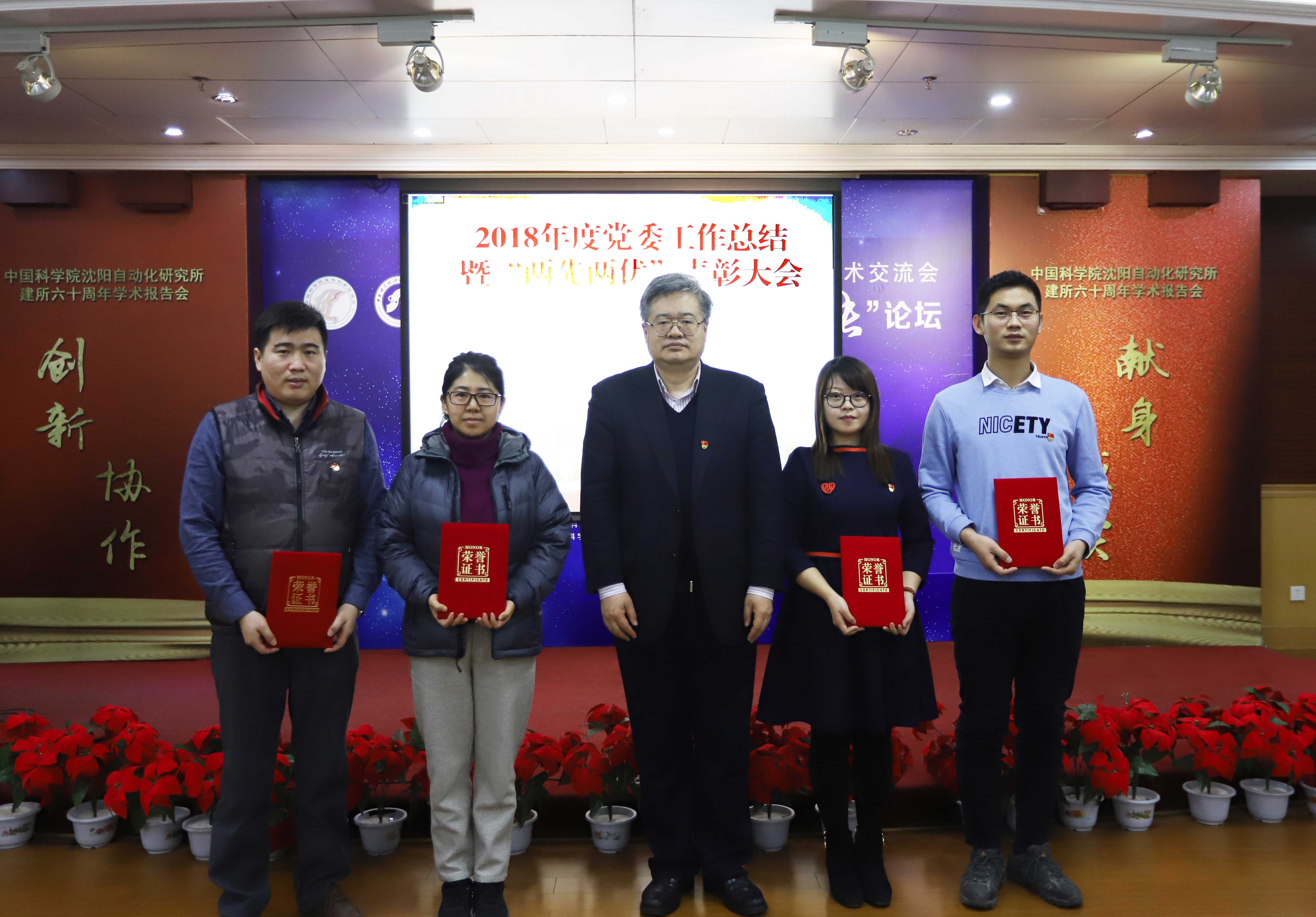 于海斌宣读了沈阳自动化所2018年度“两先两优”获奖名单,所领导班子成员和王天然院士为获得表彰的集体和个人颁奖。