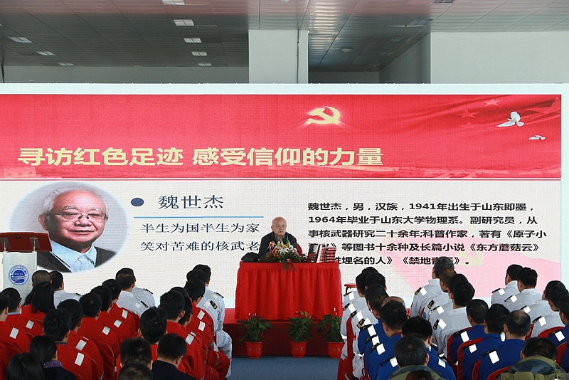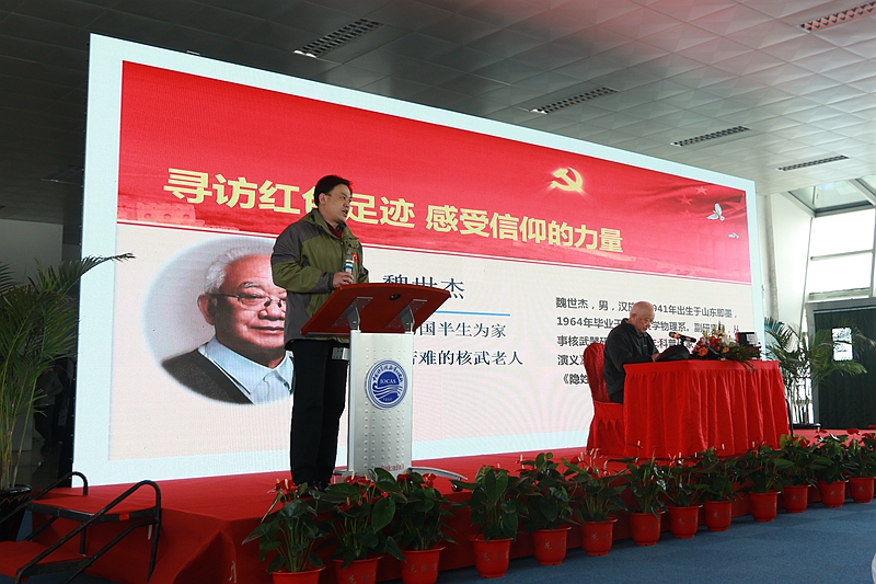 本次活动特别邀请了原中国工程物理研究院副研究员、被称为“核武老人”的魏世杰老先生作专题讲座报告。魏老根据自己的亲身经历向大家讲述了“两弹一星”发射背后鲜为人知的故事,生动形象地再现了国家在“两弹一星”时期艰难的摸索前进过程,同时分享了自己退休后的生活。魏世杰1964年从山东大学物理系毕业后进入新中国的核武器研究领域工作。上世纪五六十年代,党中央作出了自主研制“两弹一星”的决策,魏世杰和其他满怀热血的爱国青年一同踏上了开往青藏高原的列车,奔赴戈壁荒滩,在国防科研战线上隐姓埋名一干就是26年,参加了中国第一颗原子弹、氢弹及导弹核武器的研制工作。负责核武器炸药部件的性能测试,每一百次就有二十次会爆炸,几乎每天都在与死亡共舞,但是为了国家的核盾牌事业,魏世杰内心涌起的想法却是:“在这个地方,即便是牺牲了,也是光荣的。”魏世杰为我国的核武事业奉献了全部青春,先后有17项科研成果获得国防科工委奖励,见证了我国“两弹一星”的成功研制,被称为“核武老人”。