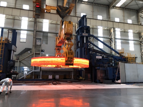 中科院金属所在中核集团的委托和支持下,组建产学研团队,应用太钢高纯净连铸板坯,在山东伊莱特重工研制成直径15.6米的环形锻件,其特点是整体无焊缝,均质化程度高,组织均匀性好。该巨型环件将应用于我国第四代核电机组,其成功研制将有力地保障我国核工业领域重大装备的实施。