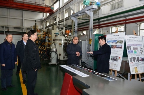 于英杰局长一行首先参观了大型铸锻件和轴承钢车间、钛铝合金车间、球差电镜,随后听取了孙晓峰副所长作的重大科研进展和师昌绪先进材料创新中心进展报告及李殿中主任作的中科院C类先导专项方案报告。于英杰局长对我所取得的科研成果和为国家重要领域提供的技术支撑给予充分肯定,同时对金属所师昌绪先进材料创新中心建设和C类先导专项方案准备给出了宝贵的意见与建议。