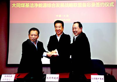 为更好的实现创新研究院、大同市政府和同煤集团在煤基能源清洁转化利用方面的优势互补,推动我国现代煤化工产业优质、快速发展,推动大同传统能源能效实现质的提升,三方协商共建大同煤基洁净能源综合发展战略联盟(以下简称“战略联盟”)。刘中民、武宏文和崔建军分别代表三方签订了战略联盟备忘录。战略联盟的建立,将为山西能源革命大同争当尖兵提供科学技术支持和项目落实实践。