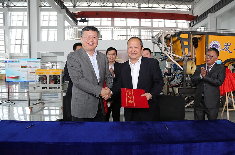 中科院海洋所是从事海洋科学研究、高新技术研发的综合性海洋科研机构,在国际海洋科学领域具有重要影响的研究所,拥有海洋科学领域的优秀专家学者、水下机器人(ROV)设计开发、试验研究技术人员和ROV研发后勤供给保障基地。中?;怨痰匮Х瘢ㄉ钲冢┯邢薰驹诠?span>ROV工程领域处于领军地位,拥有较大规模的ROV研发人员、ROV设备、操作技术人员和后勤基地。双方在进行ROV相关技术合作过程中建立了深厚友谊。为更好地服务海洋科研事业及海洋工程装备发展需求,积极响应王清宪书记提出的“学深圳赶深圳”有关要求,双方决定签订战略合作协议并共建ROV技术研发中心。这一举措是海洋所筹建中科院海洋大科学研究中心的重要布局,同时也是服务山东省新旧动能转换和青岛市“海洋攻势”的重要行动。双方将以此次签约及挂牌仪式为契机,抓住海洋战略发展的良好机遇,打造一流的科技创新平台和海洋工程人才培养高地,助力山东省和青岛市新旧动能转换工程,共同推动我国海洋科技事业扬帆远航、驶向深蓝。