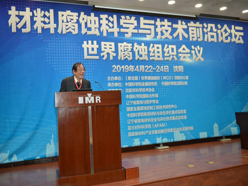 4月22日至24日,在第11个世界腐蚀日之际,材料腐蚀科学与技术前沿论坛——世界腐蚀组织会议在沈阳成功举办?;嵋橛桑瞎┦澜绺醋橹╓CO)沈阳办公室主办,由中国科学院金属研究所和中国科学院沈阳分院承办?;嵋榈玫搅松蜓羰锌蒲Ъ际跣?、中国科学院国际合作局、辽宁省腐蚀与防护学会、国家金属腐蚀控制工程技术研究中心、中国科学院核用材料与安全评价重点实验室、辽宁省核电材料安全与评价技术重点实验室、亚太材料科学院(APAM)、国家新材料产业发展战略咨询委员会东北研究院的大力支持??挛霸菏俊⒅芰菏?、薛群基院士、周克崧院士、侯保荣院士担任大会顾问。中科院沈阳分院院长、国家金属腐蚀控制工程技术研究中心主任、中国科学院核用材料与安全评价重点实验室主任韩恩厚研究员担任大会主席。