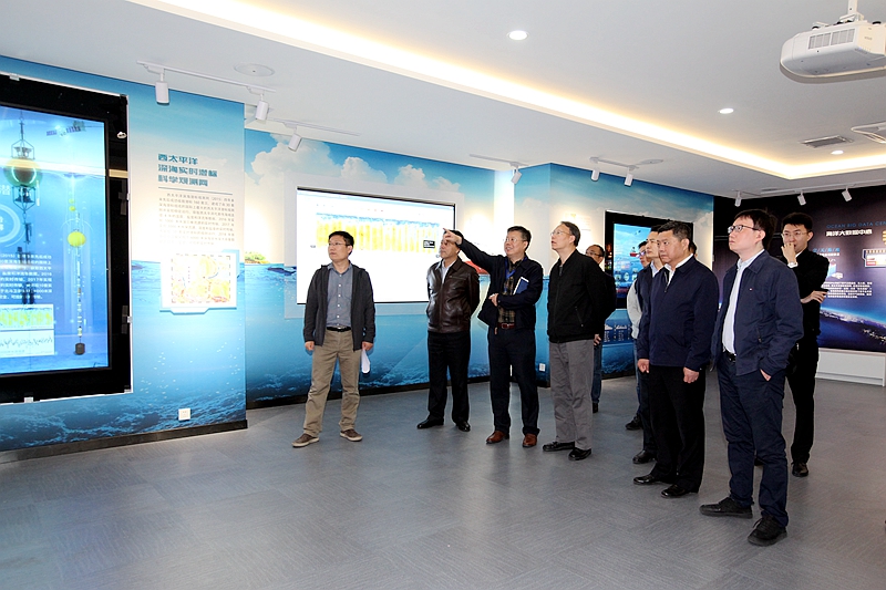 在海洋人工智能与大数据中心,殷皓馆长一行通过交互式触控屏了解了中心的主要数据来源以及科考船、浮标、潜标的实时数据获取,考察了海洋数据可视化演示系统,调研了中国科学院海洋科学考察船队、海洋综合立体观测网络、全球气温变化、中国近海海洋数值模拟在海洋灾害预警预报方面应用成果情况。